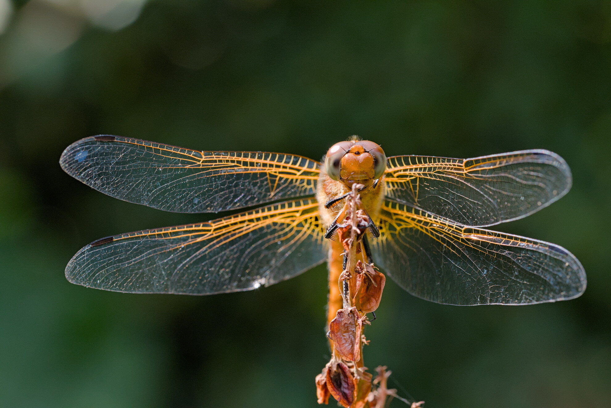 J’ai donc eu la chance de croiser dans mon jardin, un beau spécimen de libellule fauve femelle, ou peut-être un jeune mâle, ils sont identiques. Le mâle adulte est différent, avec un abdomen bleu clair.