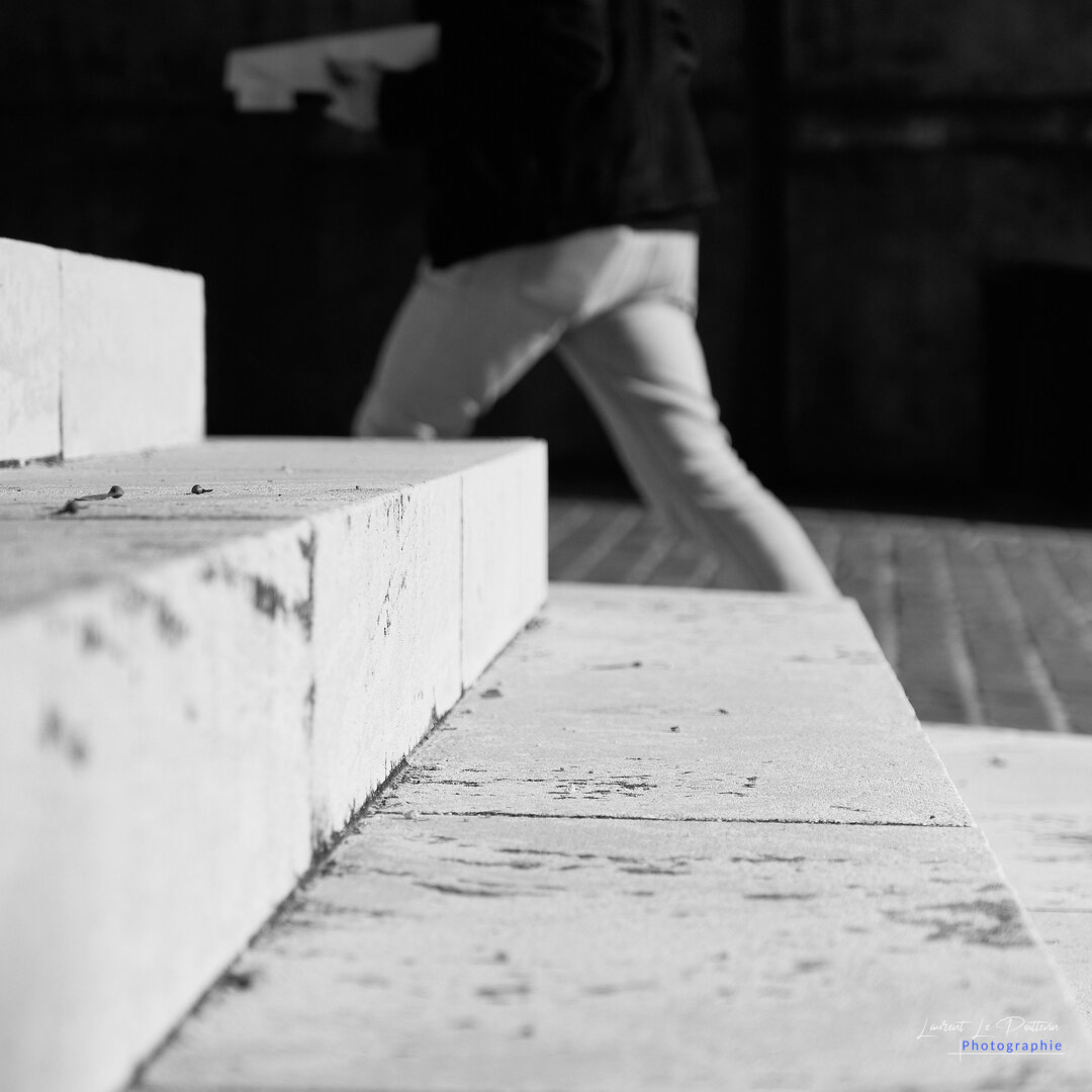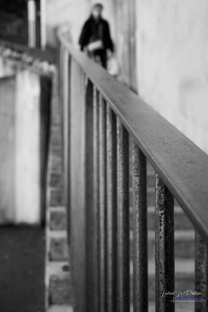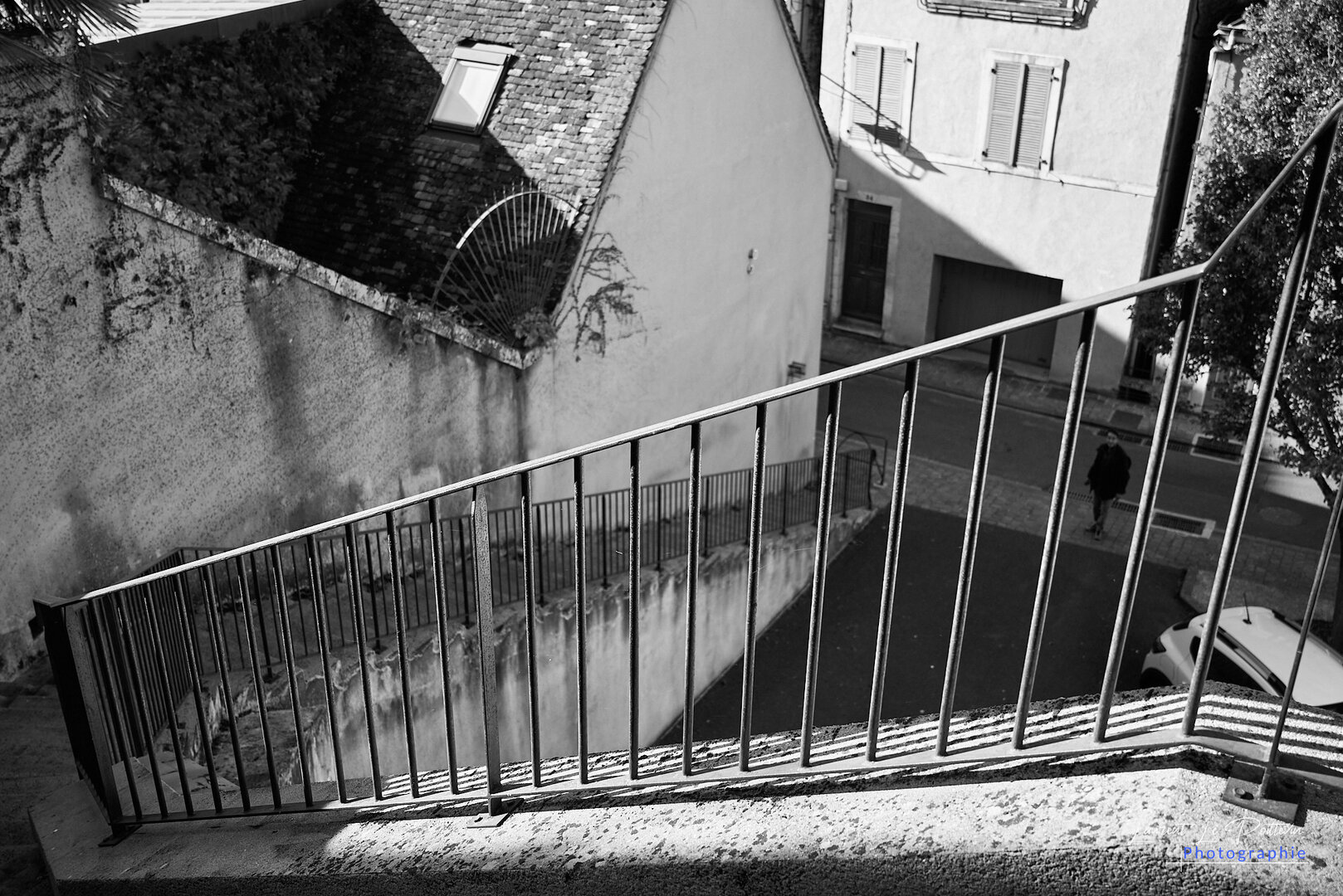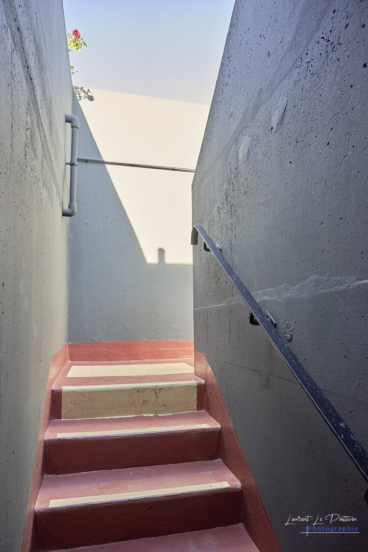 Un thème qui me paraissait trop simpliste et rébarbatif, mais au final, j’ai fait des images que je trouve intéressant. Pas des chefs-d’œuvre, mais deux séries, une en noir et blanc, pour jouer sur les lignes et les contrastes liés aux géométries d’un escalier, et une autre en couleurs.